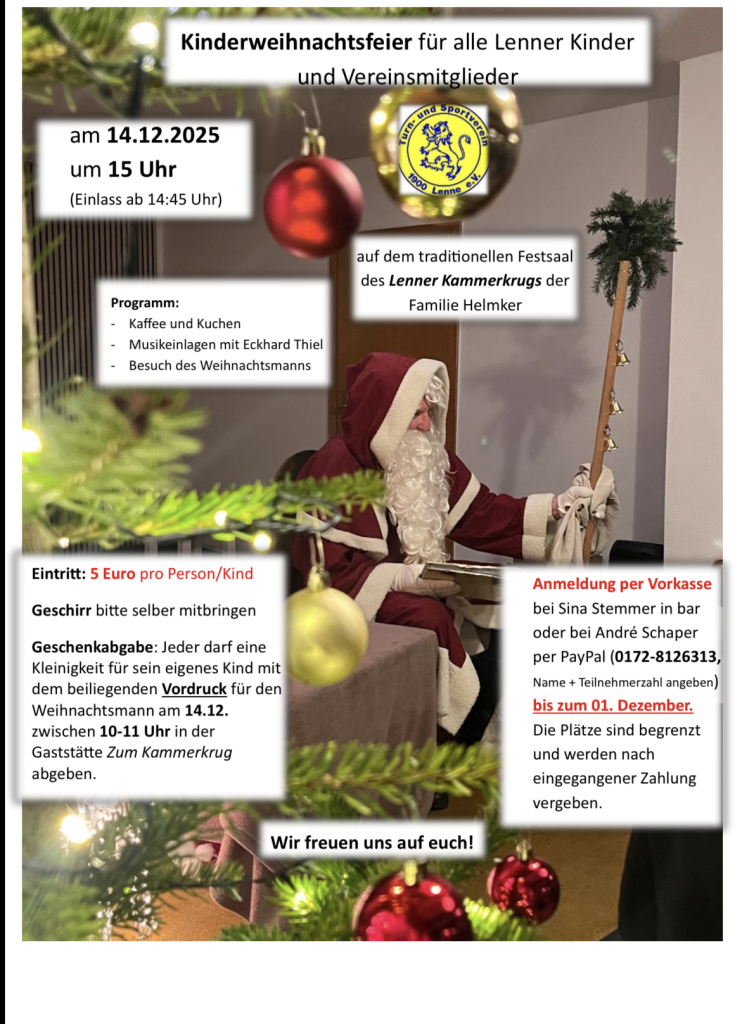 Kinderweihnachtsfeier in Lenne von Thorsten Eilers · 14. November 2025 Infos für den Weihnachtsmann 2025